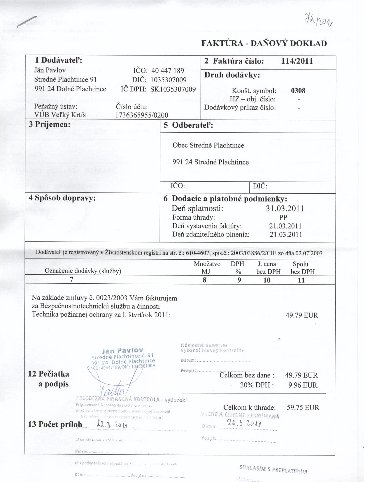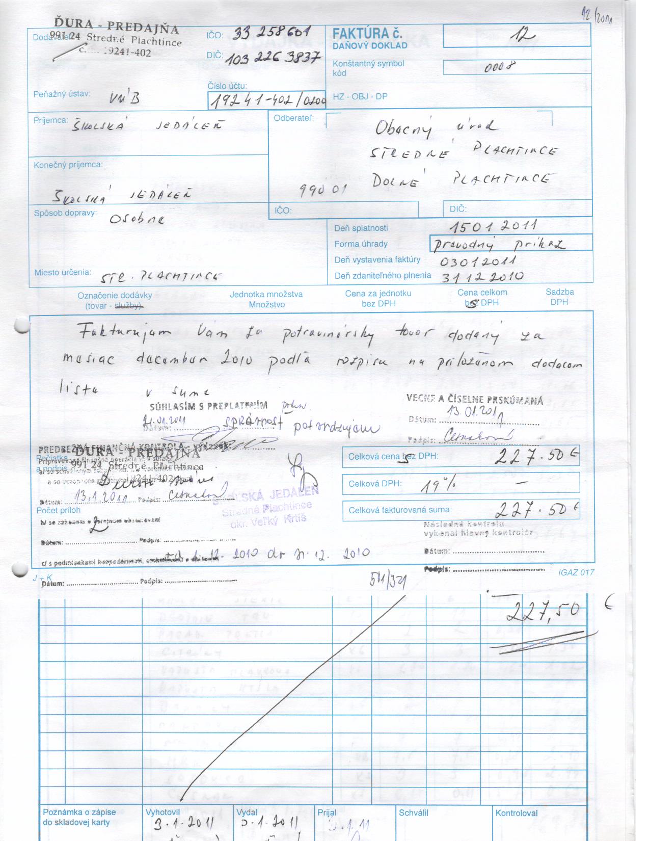 | Zverejňovanie faktúr podľa zákona č. 546/2010 Z.z. - rok 2013 |